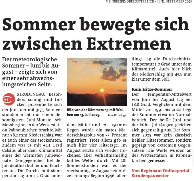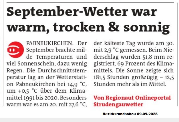• Wetterrückblick September 2025 im Strudengau – warm, trocken und sonnig