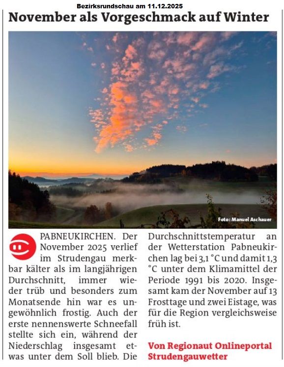 • Dezember 2025 – Extrem trocken, außergewöhnlich sonnig und dennoch oft neblig im Strudengau